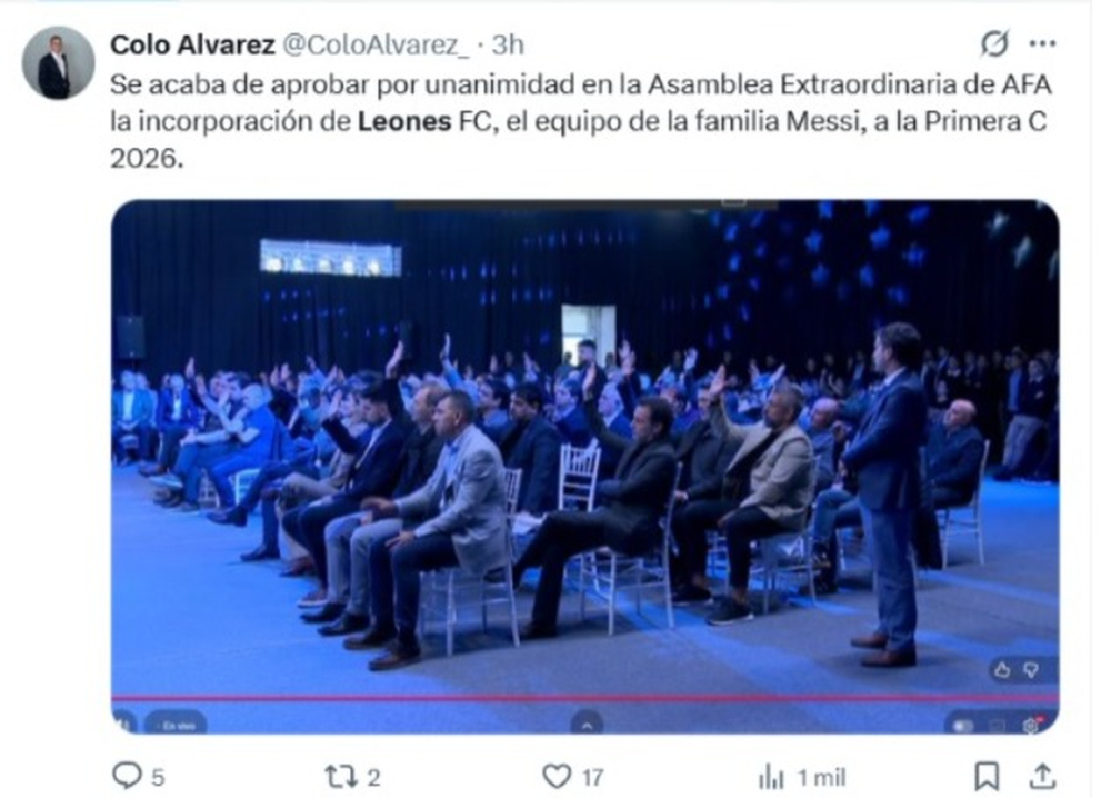Gentileza: Leones FC.Una importante noticia atraviesa al fútbol argentino, sobre todo las categorías del Ascenso. La AFA confirmó en las últimas horas que Leones FC, club fundado por la familia de Lionel Messi, disputará la próxima temporada en la Primera C.
