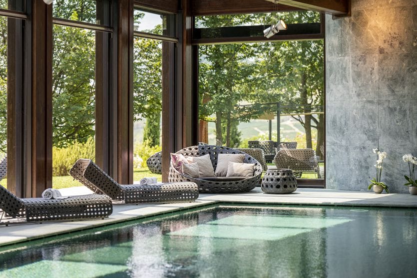 Когда отель открылся в 2009 году, осознав потенциал итальянского и международного винного туризма, он был ни на что не похож. Современное здание с большими окнами, позволяющими любоваться красотой природы, 49 номеров, отремонтированных в 2023 году, и просторный спа-центр, который радует плавным переходом из внутреннего пространства в внешнее, подогреваемый бассейн с направленными струями, лужайка с шезлонгами для принятия солнечных ванн и наслаждения видом, а также тщательно подобранные массажные процедуры. Это идеальное место для восстанавливающих выходных, где вы сможете сосредоточиться на своих потребностях и превзойти их. Не нужно ничего организовывать; просто позвольте себе увлечься ритмом сельской местности и ее успокаивающей тишиной. Приятная отрешенность от основ, которую Чезаре Павезе точно выразил словами: «Жизнь следует прожить вдали от сельской местности: берешь от нее все, наслаждаешься, а потом, вернувшись, как и я в сорок, находишь всё новое».